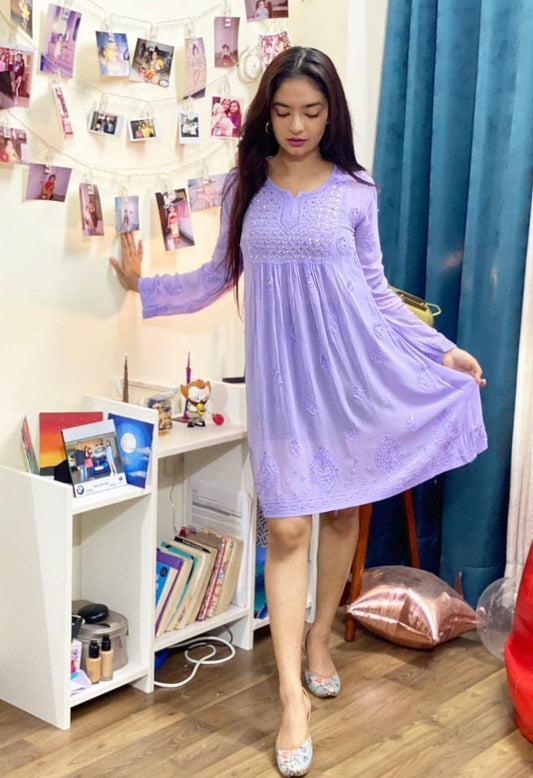 Voil cotton kurta with color thread chikankari on neck Daman and seleaves