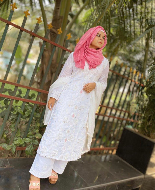 Viscose 3pc set kurta, garara and dupatta with mukaish work
