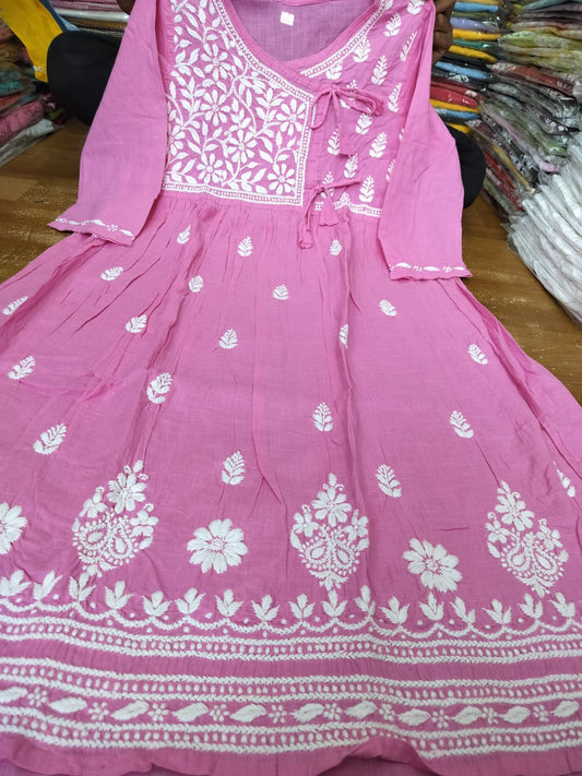 Cotton A-line kurta with beautiful chikankari handwork