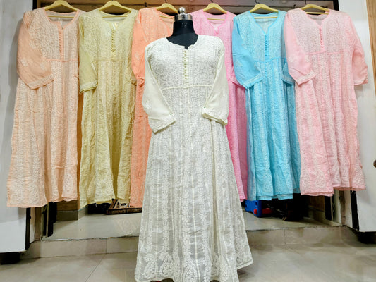 Lucknowi Chikankari Heavy Side Dori Angrakha Gown