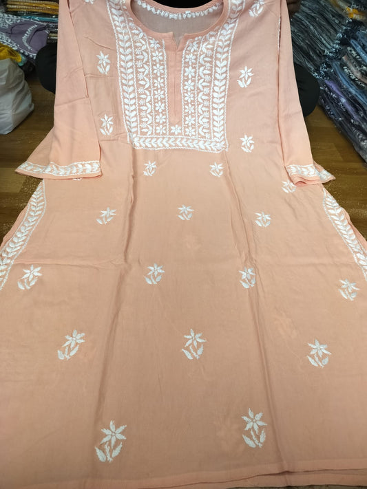 Plus size rayon kurta with beautiful chikankari handwork