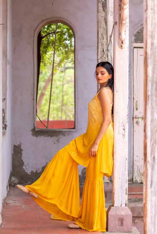 Viscose 3pc set kurta, garara and dupatta with mukaish work