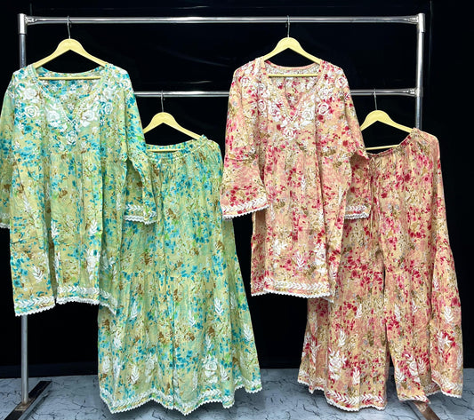 Pure chanderi shirt and pant set also in plus sizes