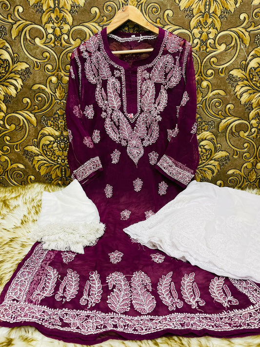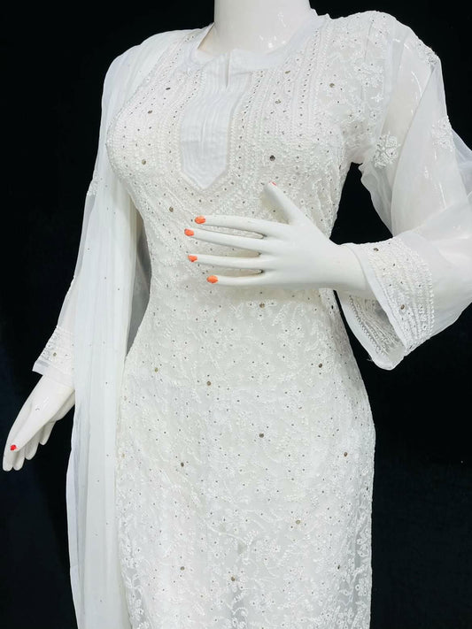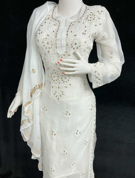 Georgette Akooba Kurti With Pant & Dupatta