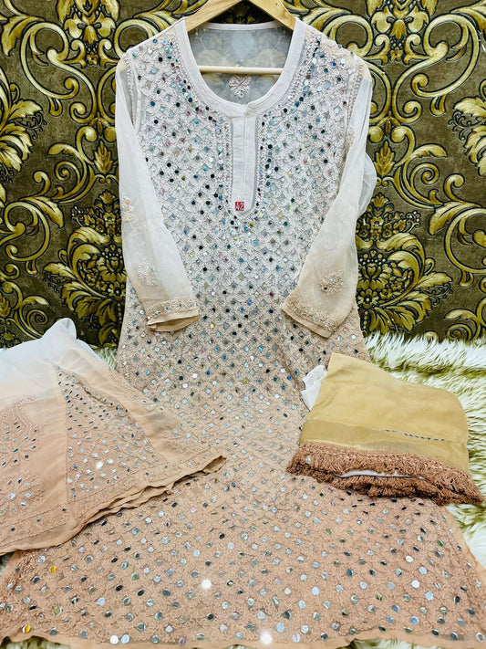 Georgette Chauptta Jaal Mirror Sharara & Dupatta