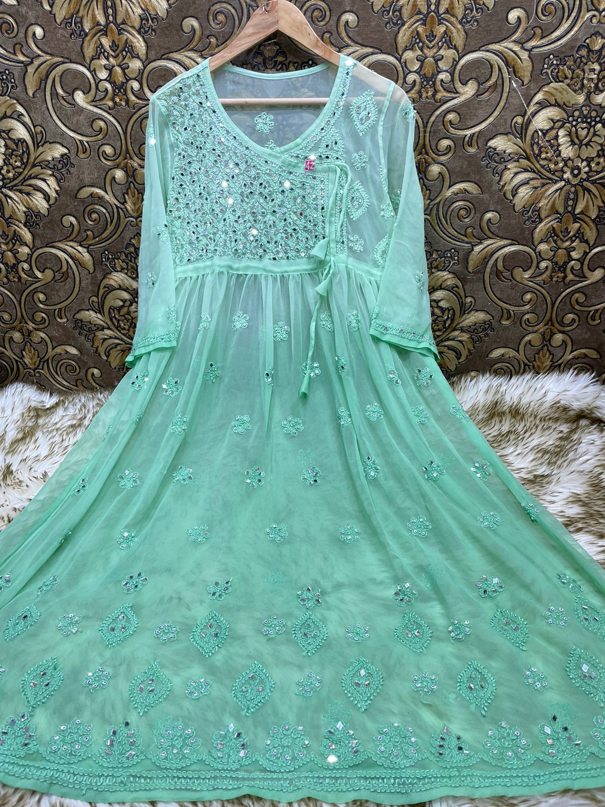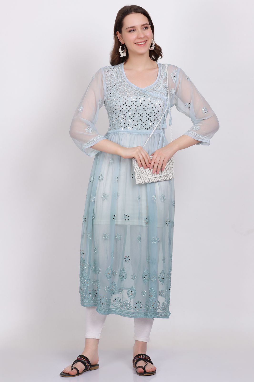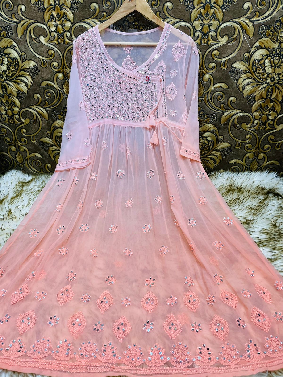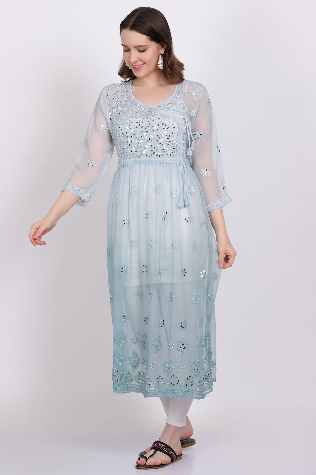 Lucknowi Chikankari Georgette Shaded Mirror Gown