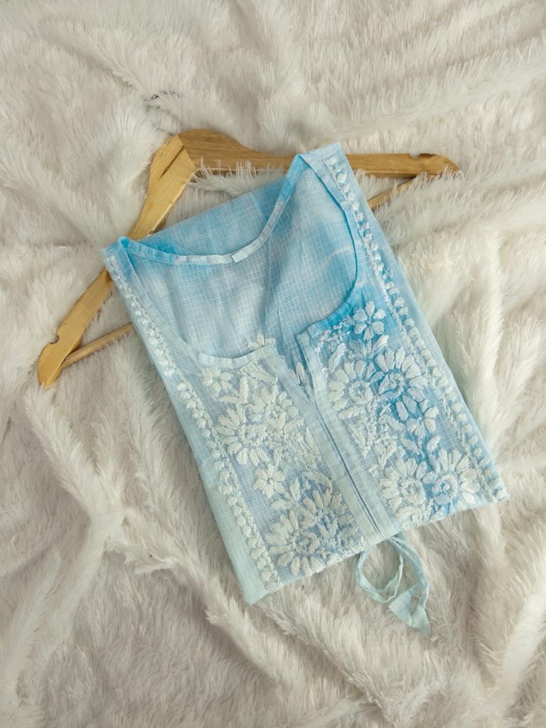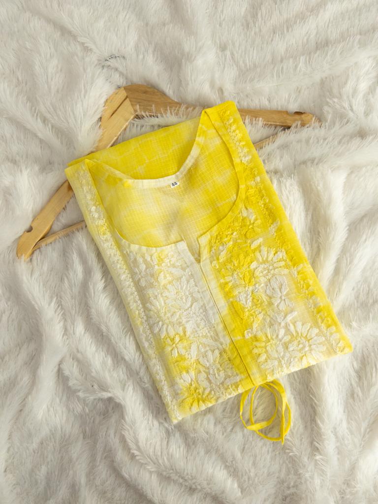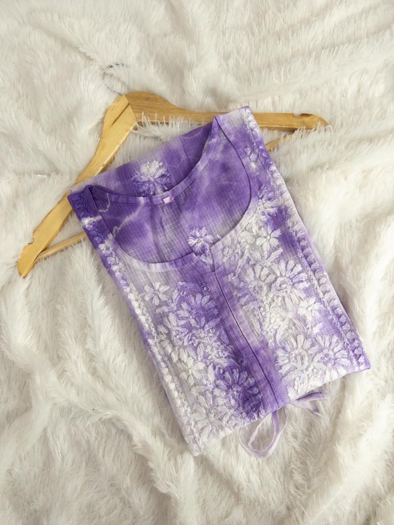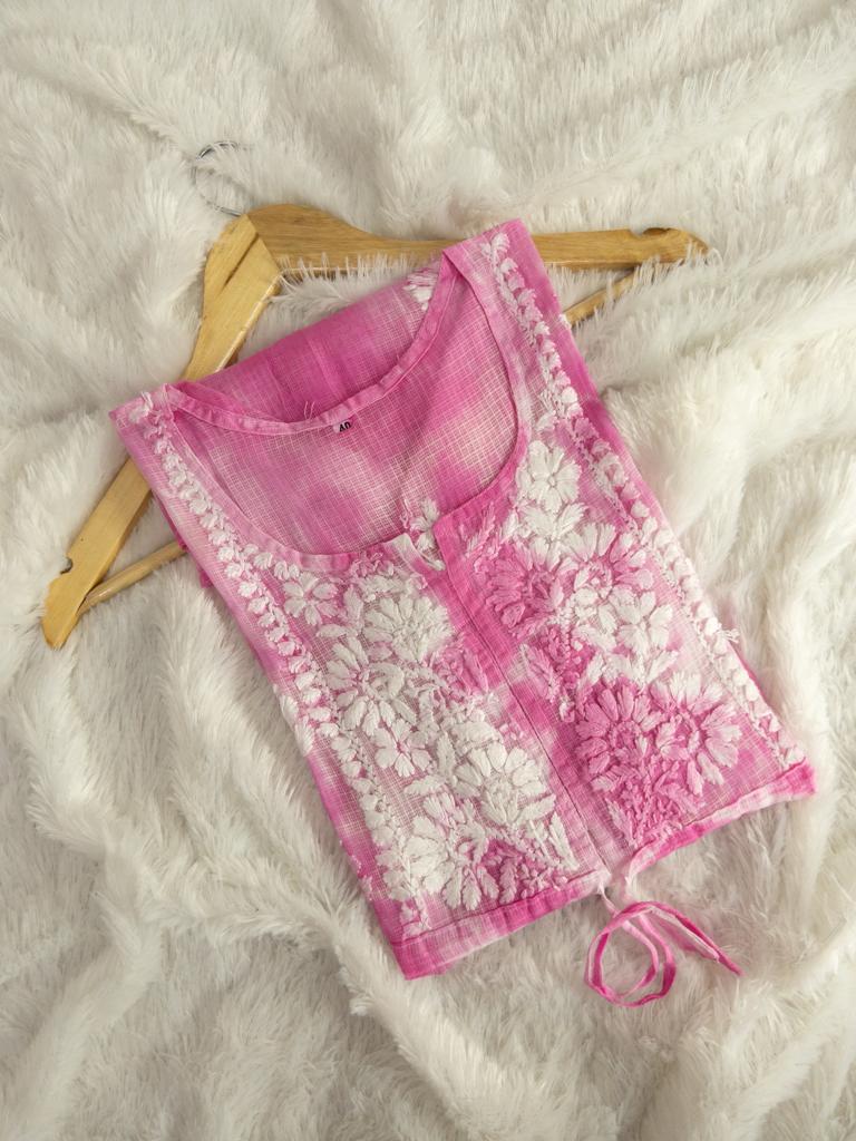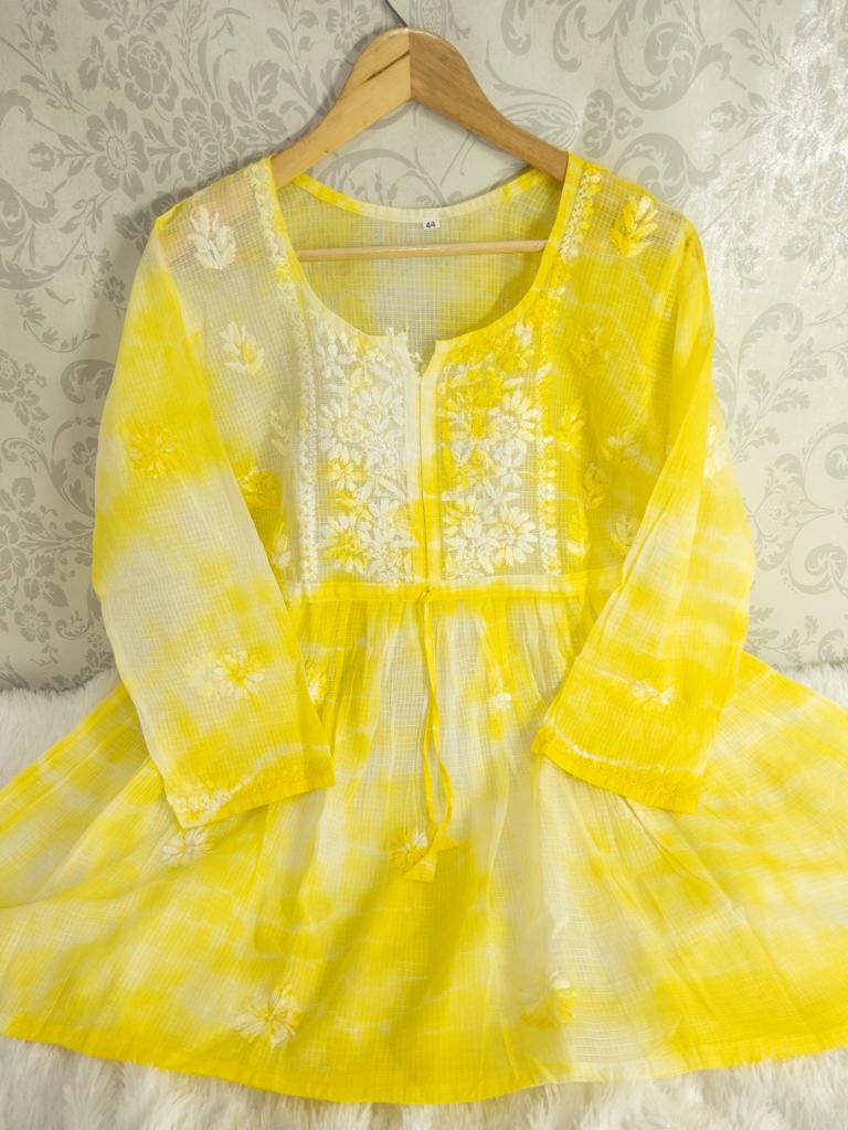 SHOP THE LUCKNOWI CHIKANKARI HANDICRAFTS TIE & DIE KOTA DORIA FRONT ADJUSTABLE DORI SHORT GOWN READY TO HEAR THE COMPLIMENTS