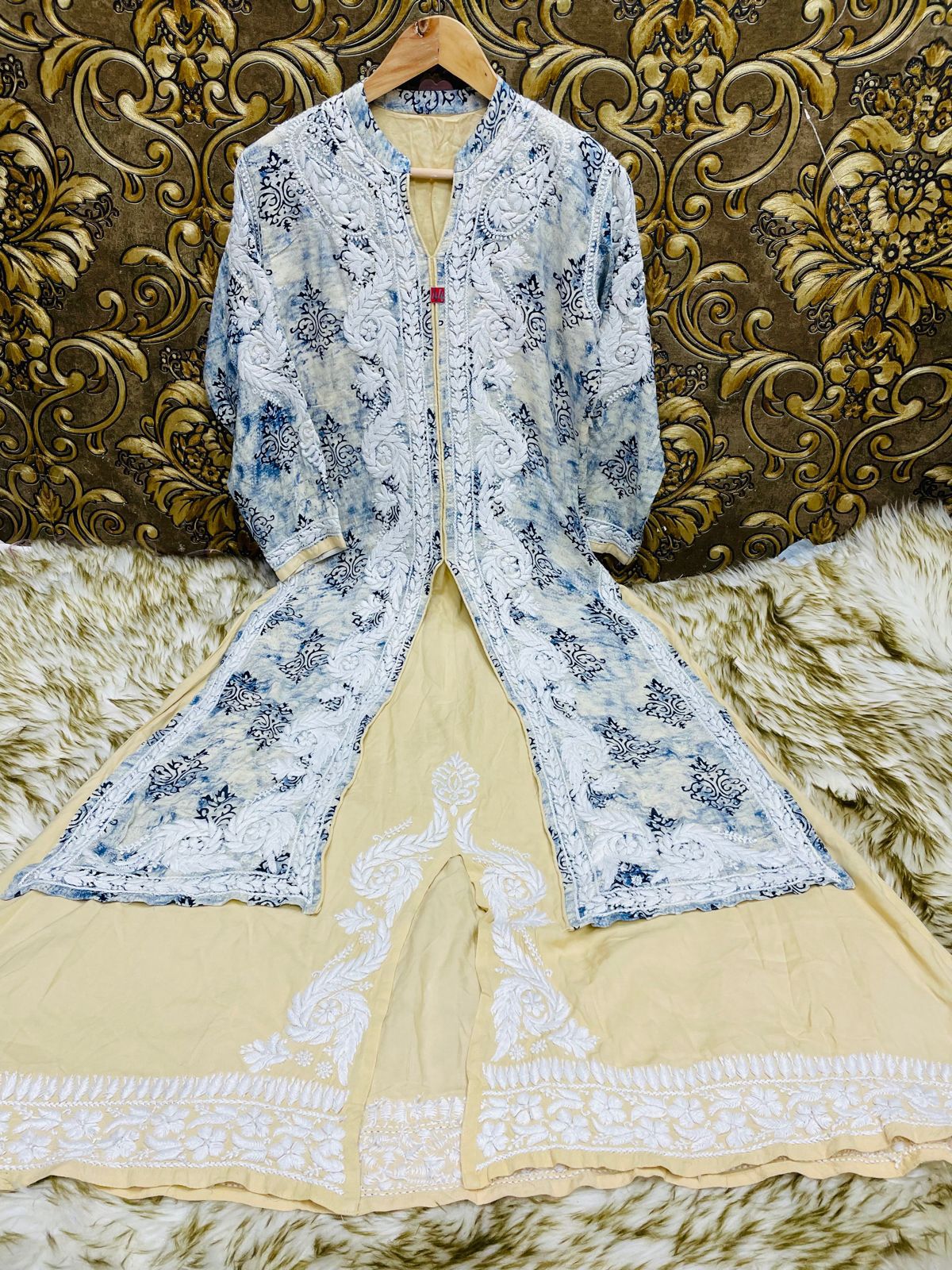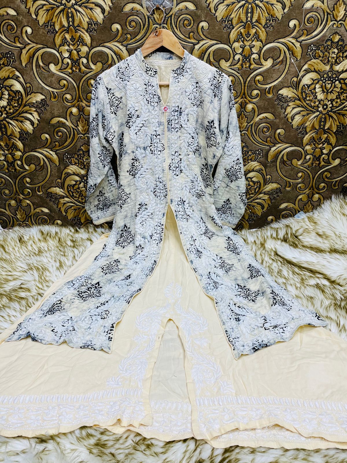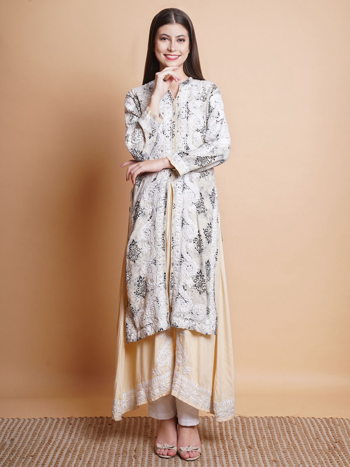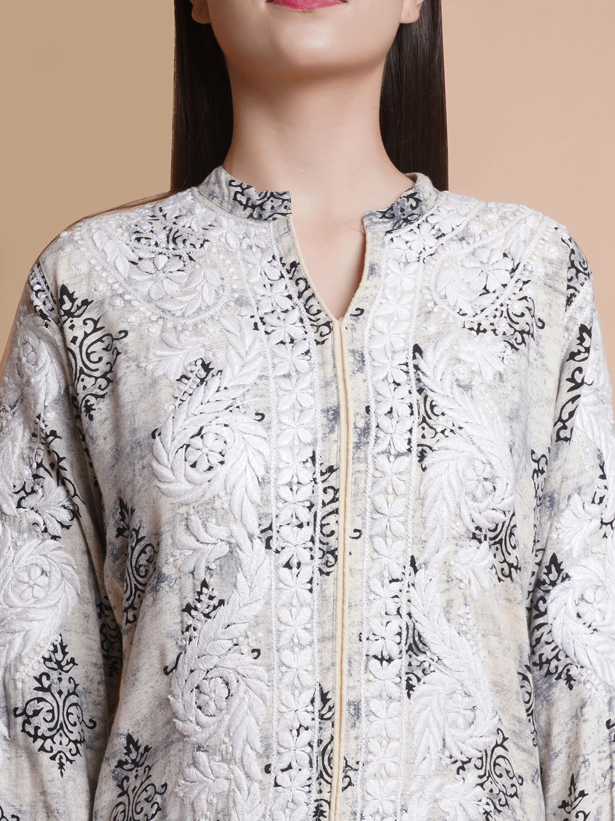 *Lucknowi Chikankari Printed Modal Double Layer Shrug*