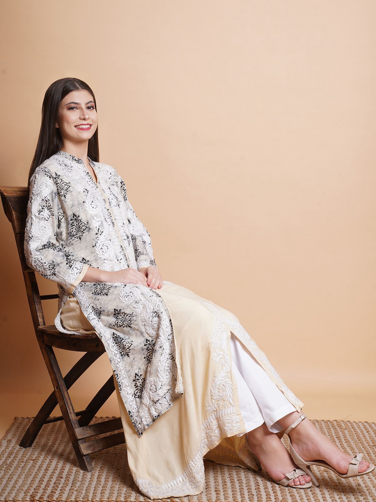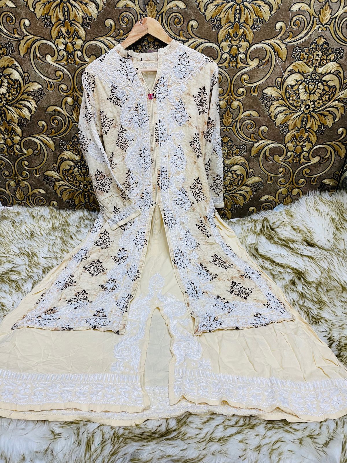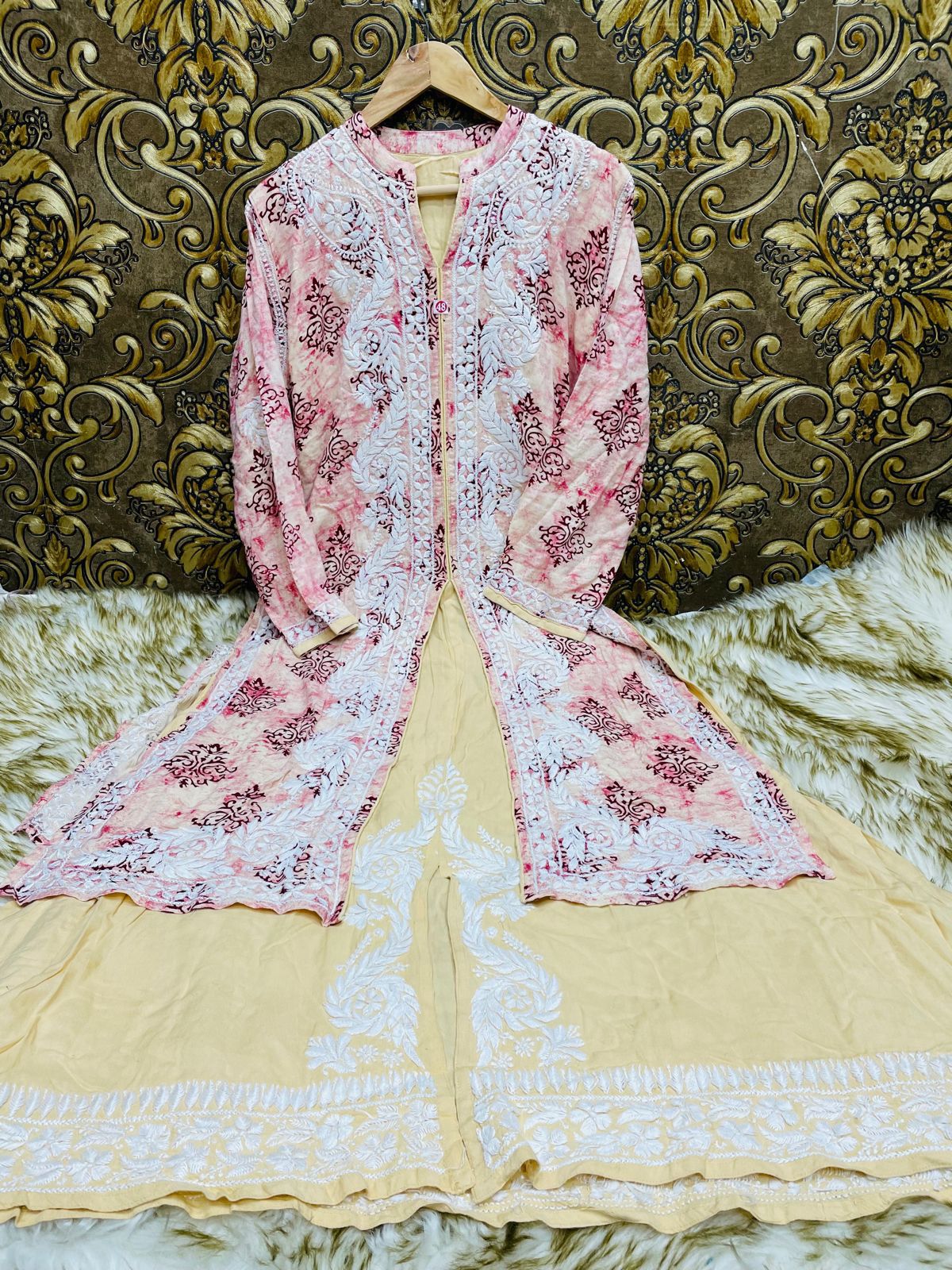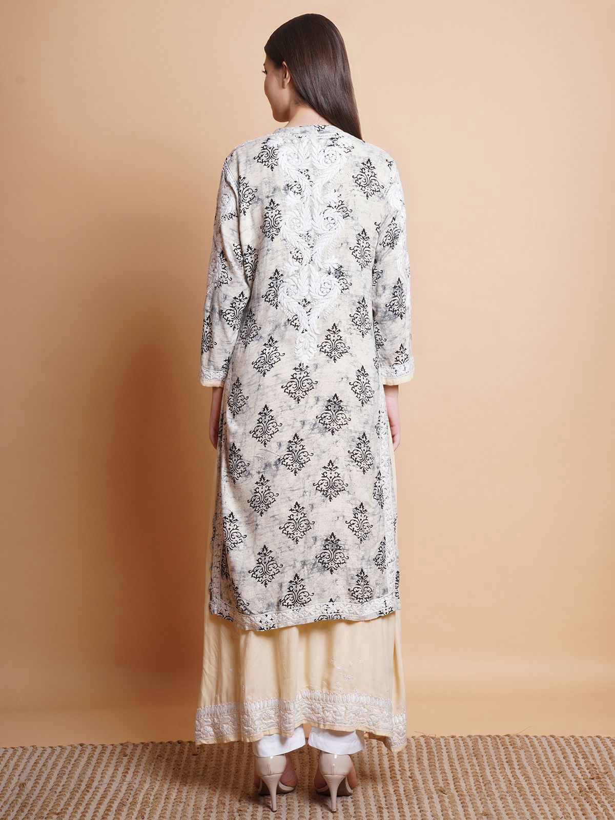 *Lucknowi Chikankari Printed Modal Double Layer Shrug*