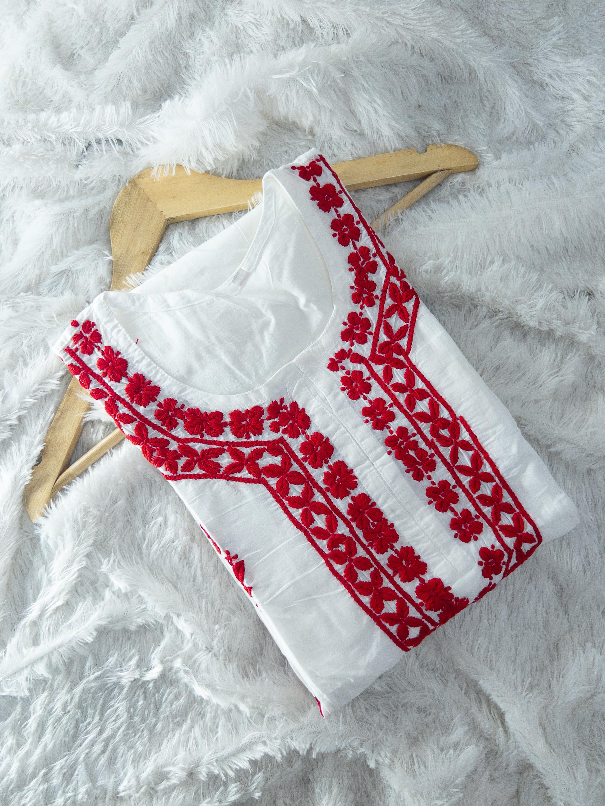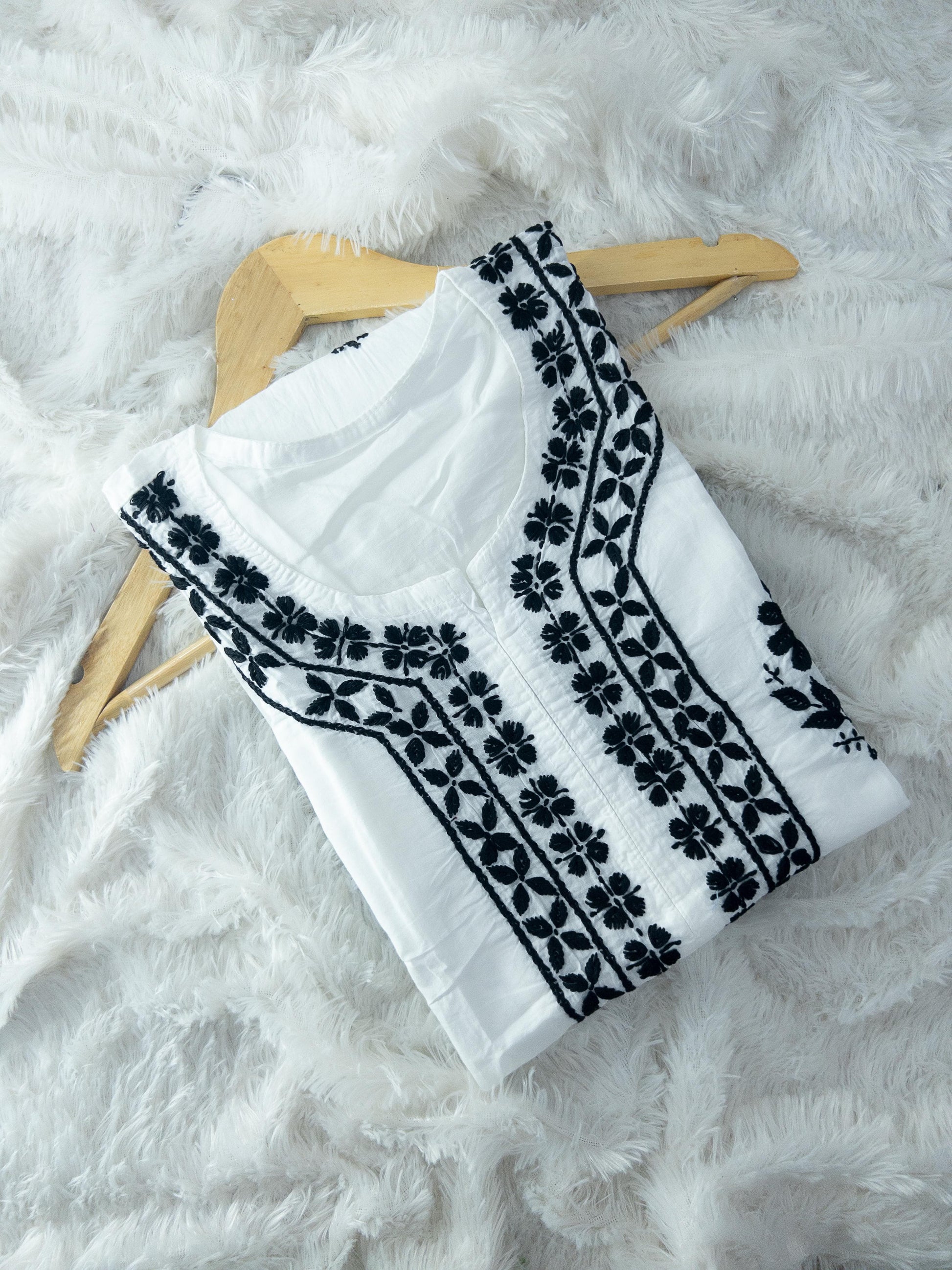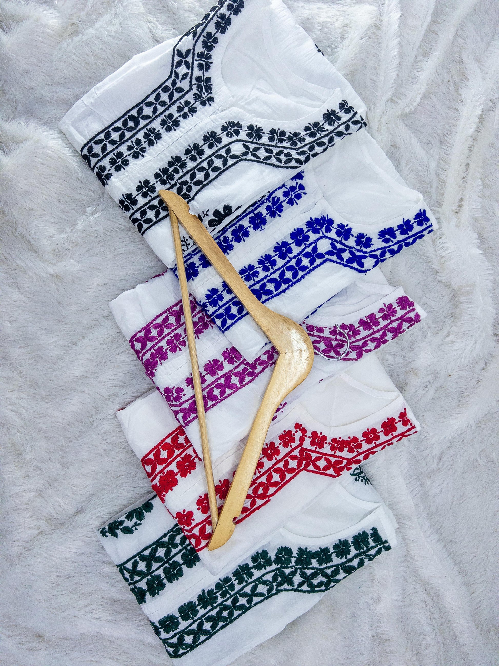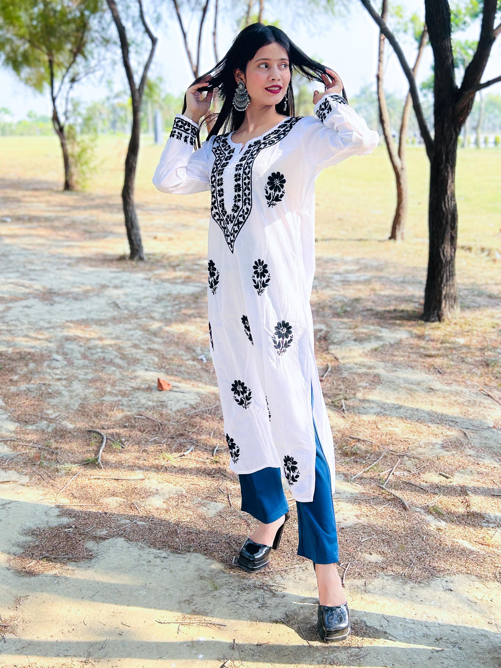*IN A WORLD FULL OF TRENDS, ADD A COLORFUL THREAD TO YOUR WHITE MUL MUL COTTON KURTI FOR A TIMELESS LOOK*