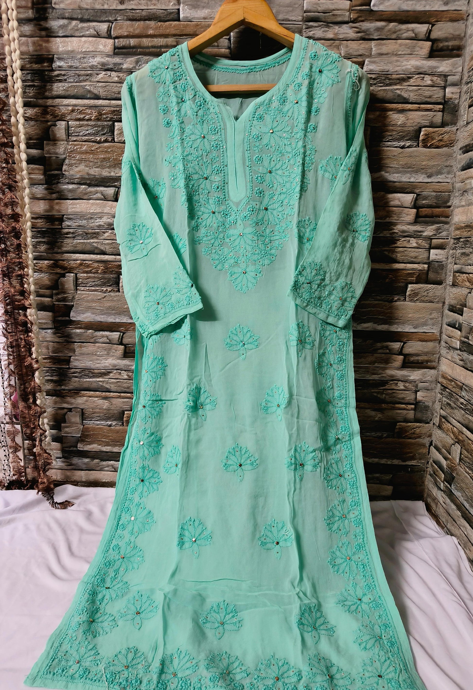 Viscose kurta with beautiful chikankari handwork and mukaish work